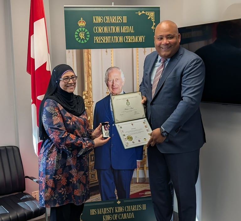 In March 2025, Amina Khote was awarded the King Charles III Coronation Medal, honouring the significant impact HENS has made in supporting newcomer families throughout Toronto.